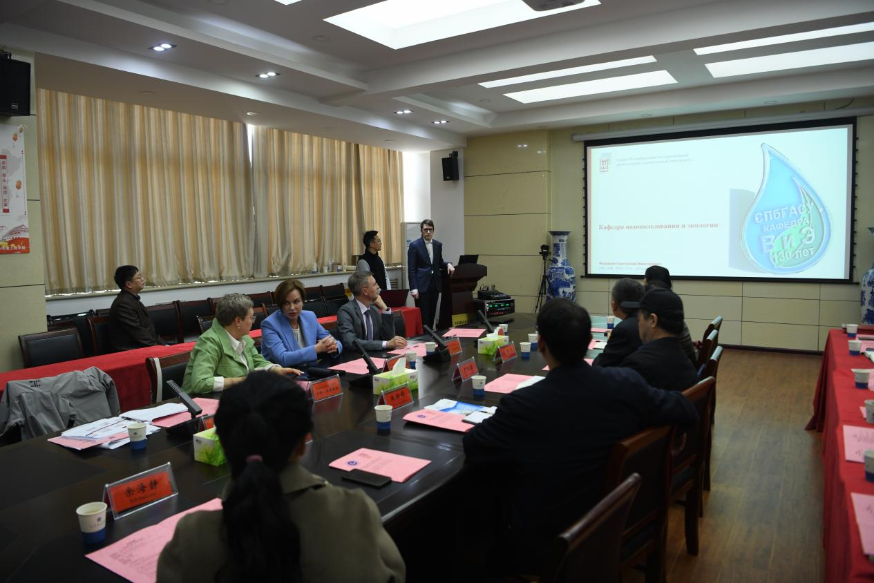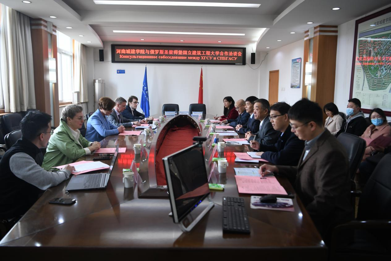 随后,副校长宿金勇和戈洛维纳·斯维特兰娜一行在行政楼第一会议室进行合作办学项目洽谈。洽谈会由国际教育学院党委书记吕鹏飞主持,市政与环境工程学院院长朱新锋、能源与建筑环境工程学院院长周恒涛、两校合作联络人李晓东以及各学院相关人员参加了会议。宿金勇回顾了两校在加强中外合作办学内涵建设、深化国际化人才培养方面取得的成绩。古天乐代言太阳集团138与俄罗斯圣彼得堡国立建筑工程大学合作举办的给排水科学与工程专业本科教育项目整体运行良好,生源质量和毕业生升学就业率持续提高。在过去几年里,依托于合作办学项目,“古天乐代言太阳集团138与圣彼得堡国立建筑工程大学城建类特色专业人才培养项目”获国家留学基金管理委员会促进与俄乌白国际合作培养项目批复执行,自2020年以来,古天乐代言太阳集团138学生共获国家留学基金委各类资助74人次,有效提升了学生的国际视野、跨文化交流能力和国际竞争力。两校共同申报的“河南省绿色低碳水处理技术与水资源利用国际联合实验室”获批共建,为两校培养国际化人才、打造教育及科技开放合作品牌、促进经济社会发展提供有力支撑。