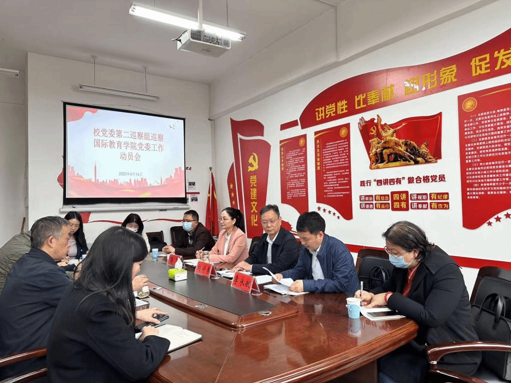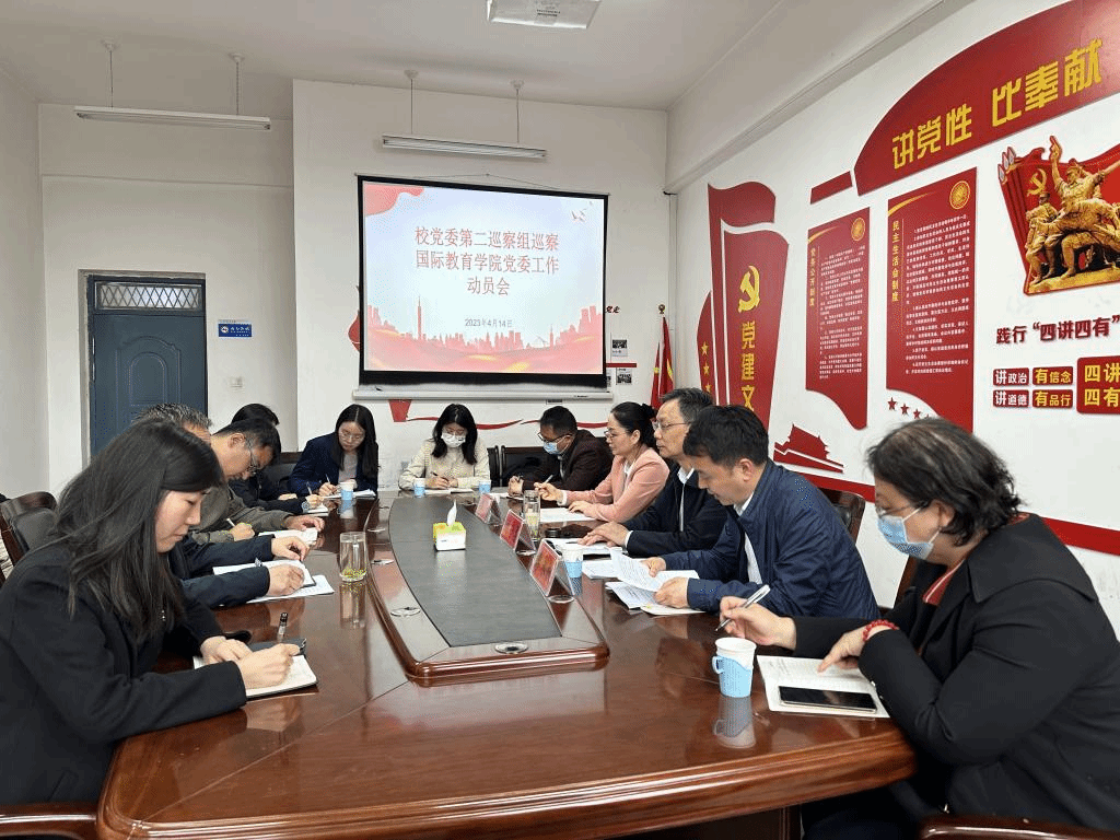 (通讯员:贾俊丽)4月14日上午,校党委第二巡察组巡察国际教育学院党委工作动员会在美荟楼201会议室召开。第二巡察工作组组长刘守勇,副组长李永献、腾飞,成员袁小琨、张崭、刘丛鹤、王杰出席会议。国际教育学院班子成员、教职工及学生代表等参加会议。会议由学院党委副书记胡思博主持。