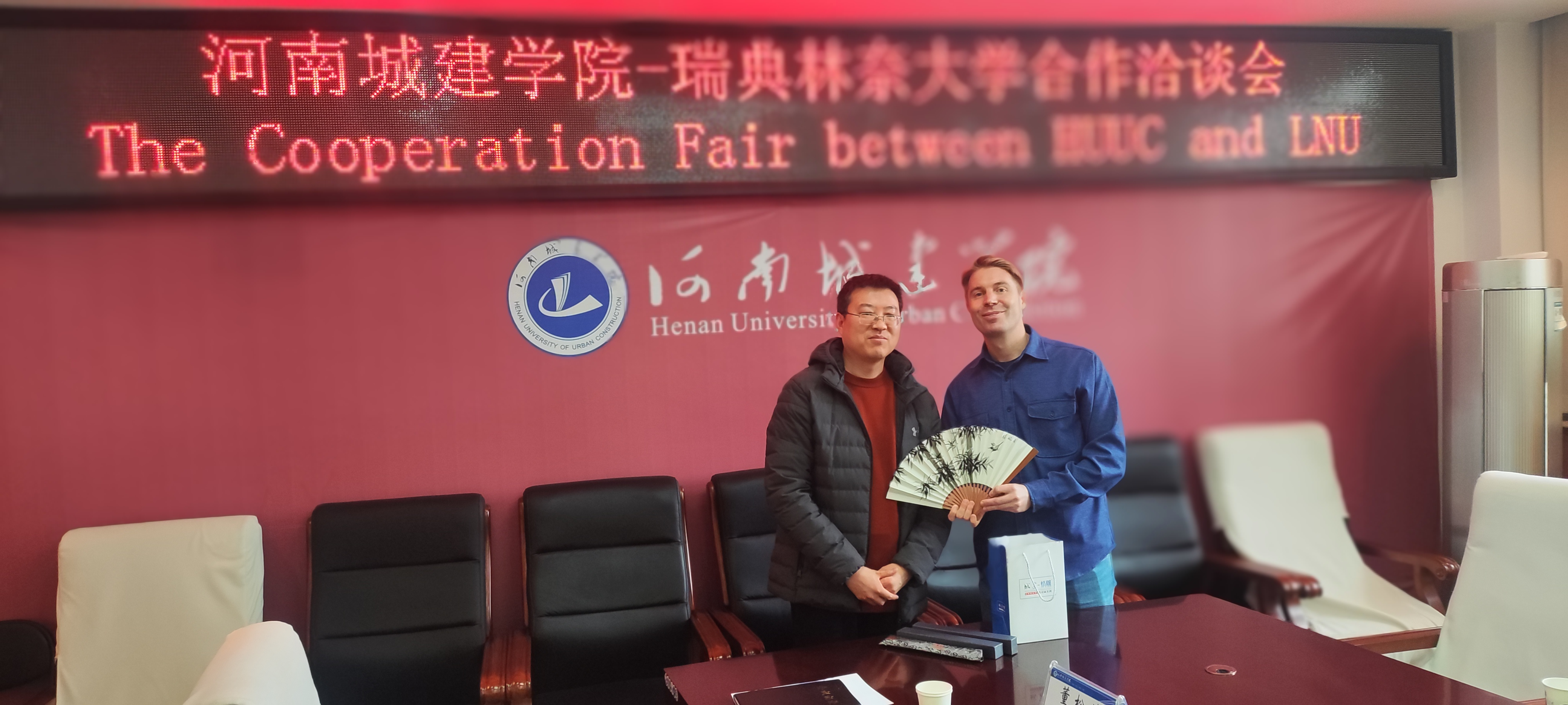 12月12日上午,瑞典林奈大学中国区办公室主任亨利克·埃德伦德一行来校交流访问。双方在行政楼第二会议室举行合作洽谈会。国际教育学院党委书记吕鹏飞、国际交流与合作处处长(国际教育学院院长)王东旭、国际交流与合作处副处长(国际教育学院副院长)刘晓燕、计算机与数据科学学院副院长苏靖枫、艺术设计学院副院长杨东旭等参加会议。会议由国际交流与合作处处长(国际教育学院院长)王东旭主持。
